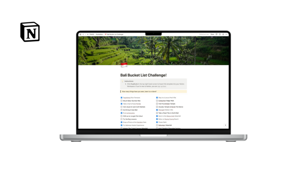 NOTION | Bali Bucket List Challenge!
